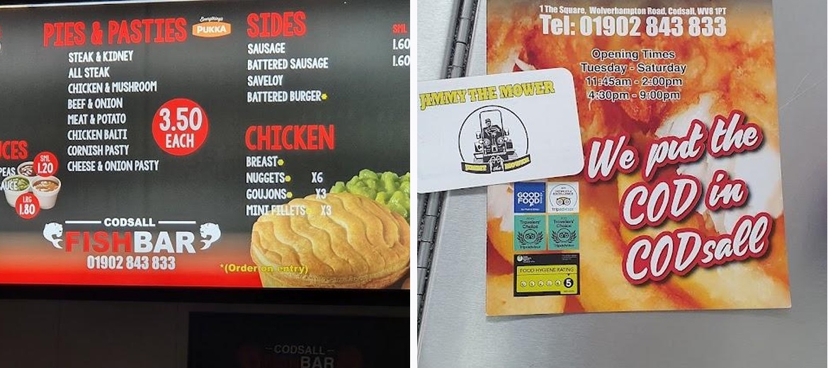 Codsall Fish Bar is open every day of the week, offering flexibility for lunch and dinner.